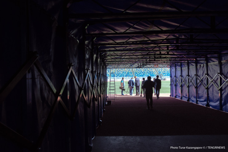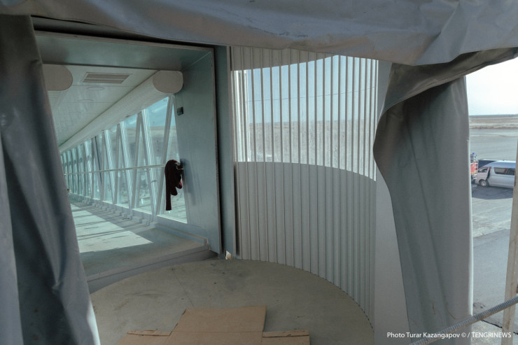 Сейчас внутри там ведут отделочные работы, крепят надпись и готовят к монтажу символику Казахстана.