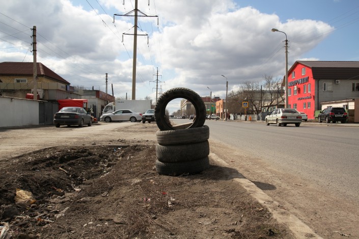 "Стоянка только для клиентов. Остальным - прокол колес", - говорится в объявлении, которое можно заметить на улице Сейфуллина в Астане. Этот текст и сам по себе звучит весьма строго, но еще больший антураж такому заявлению придает тот факт, что размещено оно на могильной плите. А вообще улица Сакена Сейфуллина выглядит вполне себе дружелюбной и даже уютной, по крайней мере в тех местах, где она пересекается с проспектом Республики, или улицей Бейбитшилик, или проспектом Победы и еще дальше. Это такой мирный, обжитый старый город. И посреди всего этого спокойствия вдруг бетонный забор, колючая проволока и надпись: "Банда из Амура". В этом месте наверняка многие вспомнят знаменитую песню про "Мурку", которая так и начинается: "Прибыла в Одессу банда из Амура…". Ренат Ташкинбаев прогулялся по столичной улице Сейфуллина и обнаружил там весьма необычный квартал.