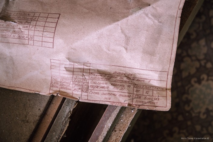 В одной из таких комнат мы обнаружили схему пионерлагеря с надписью "ГПИ Кокчетав - горсельпроект".