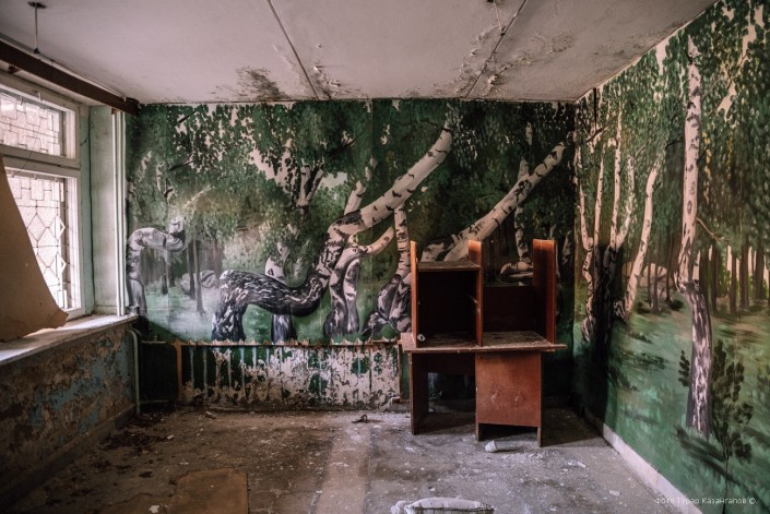 Картина с танцующими березами скрашивает атмосферу апокалипсиса и в соседнем здании.