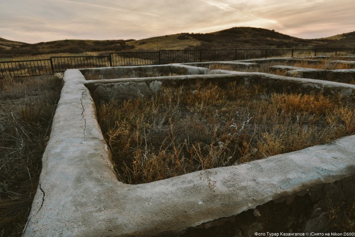 Здесь сохранился фундамент дома отца Сакена Сейфуллина. "Это была зимовка отца Сакена Сейфуллина Сейфоллы, он здесь родился", - говорят жители.