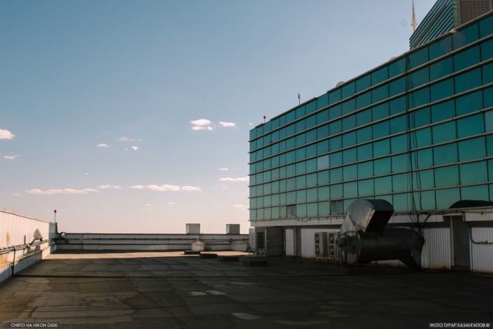 Чтобы попасть на открытую площадку, нужно пройти через технический этаж. Стоит отметить, что самостоятельно сделать это невозможно, доступ на крышу скрыт в прямом смысле за семью замками. Нужно преодолеть несколько запертых дверей.