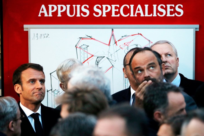 За тем, как горел собор, наблюдал и президент Франции Эммануэль Макрон и премьер-министр Эдуар Филипп. Так же, как и толпы собравшихся возле храма людей, политики с горечью смотрели на пожар.