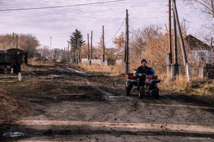 Вместе с супругой Людмилой он занимается чисткой поселка - они косят траву, убирают мусор. За это получают около 50 тысяч тенге. Но помимо этого, Владимир пытается еще зарабатывать перевозкой грузов на своем агрегате (нижнее фото).