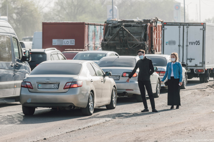 Біраз уақыттан кейін көлік саны да артып, кептеліс қайдан басталғанына көз жетпей кетті. Көлік жүргізушілерінің бірінің айтуынша, кептеліс бір кезде Райымбек ауылынан басталған.