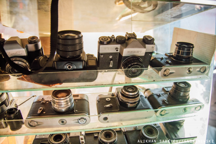 Надо сказать, что спокойно пообщаться с Шамилем просто не получается. К нему все время кто-то подходит с просьбами, советами, со старыми фотоаппаратами, камерами, посудой. Одна женщина зашла и, будто озираясь, почему-то шепотом сообщила нам, что искала на рынке портрет Сталина, но их уже раскупили, поэтому она решила зайти и предложить старые книги зарубежных авторов.