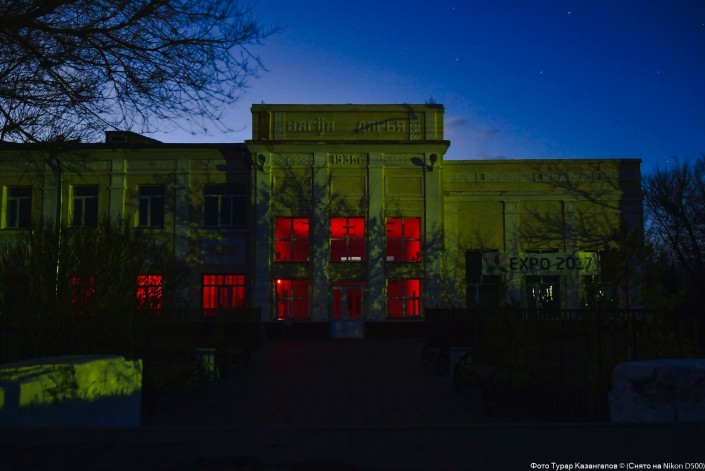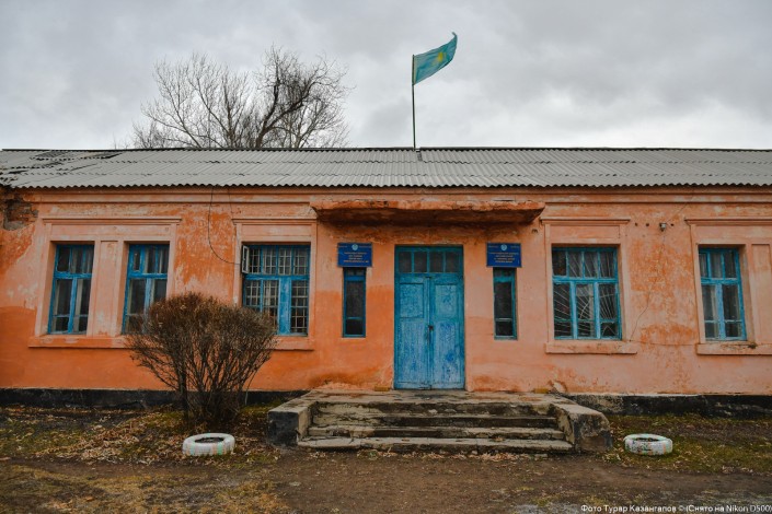 Это здание акимата поселка Дария. В момент нашего визита в нем тоже не было электричества.