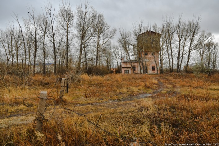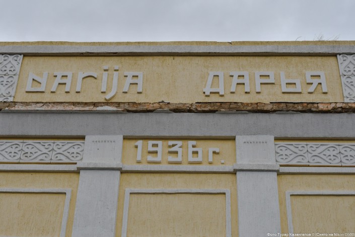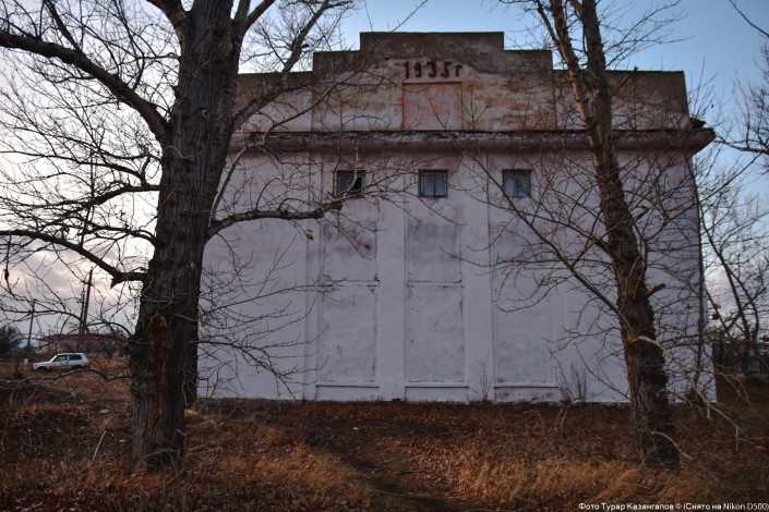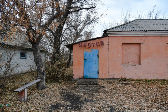 За акиматом есть еще одно старое здание. На нем едва заметна старая вывеска - DOSTAR.