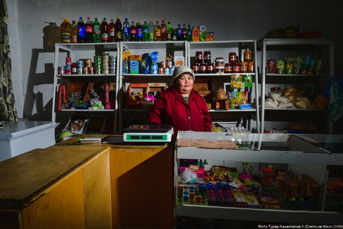 "Каждый выживает, как может", - говорит она. В ее магазине местные обычно берут товары первой необходимости - сахар и муку, хлеб раньше возили из города Абай, но теперь все пекут его дома.