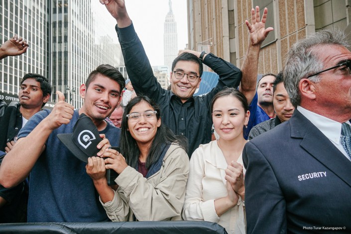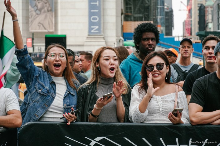 Толпа тепло встречала казахстанца. Геннадия приветствовали громкими аплодисментами и криками.