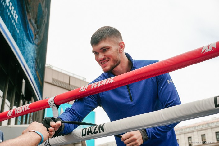 Ринг для тренировки установили на улице возле арены Madison Square Garden, где и состоится вечер бокса.