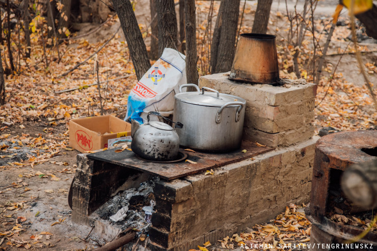 "А печку чем топите?" - спрашиваем. "Углем, конечно. Здесь все углем топят. Чтобы подключить газ, нужно согласие как минимум тридцати семей, а здесь столько не наберется. К тому же само подключение обойдется примерно в двести тысяч тенге, а это не всем по карману. У меня, к примеру, жена работает поваром в столовой, детей не с кем оставить, поэтому я без работы сижу, а пособие на детей — чуть больше сорока тысяч тенге".