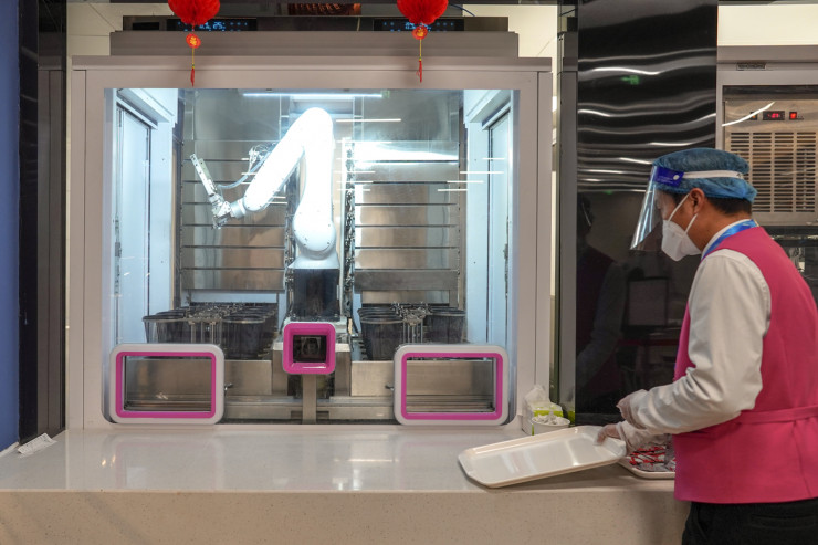 А еще здесь еду людям готовят и доставляют… роботы.