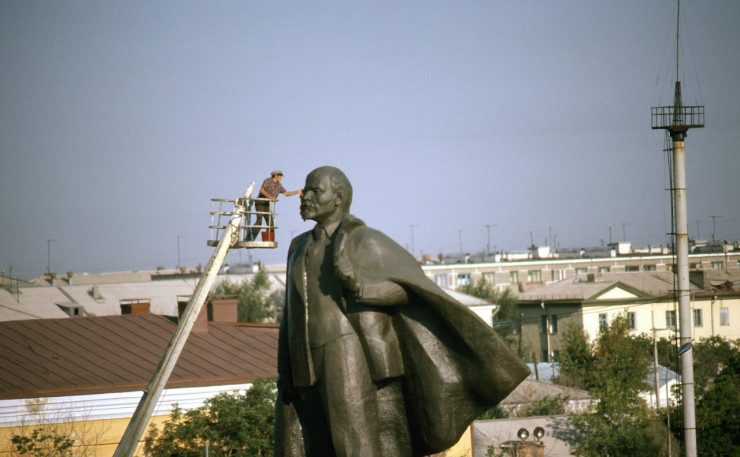 Вот, к примеру, Лоренс запечатлел из окна гостиничного номера, как моют статую Ленина. В наши дни на постаменте вместо вождя располагается памятник Абаю.