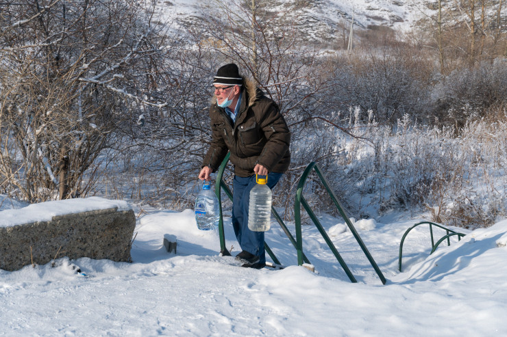 Здесь, у родника, мы встречаем пенсионера Владимира Трофимовича.