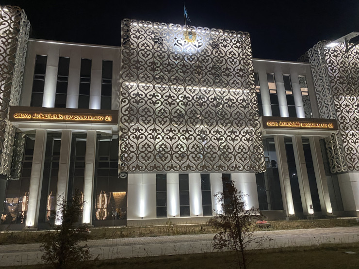 Областной акимат облицован казахскими орнаментами.