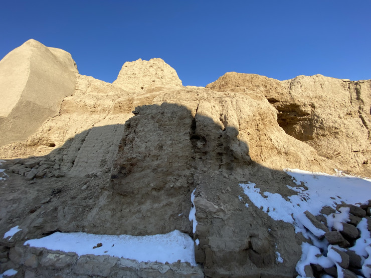 Наш гид Исмаил рассказывает, что в этих местах очень много "исторического мусора", то есть обломки кирпичей, покрытые глазурью разных цветов, можно найти на всей территории старого города Отырар. Если найдете здесь осколки ярко-бирюзового цвета, знайте, что они относятся к XIV-XV векам, а если коричневого и темно-зеленого цвета, то к более раннему периоду.