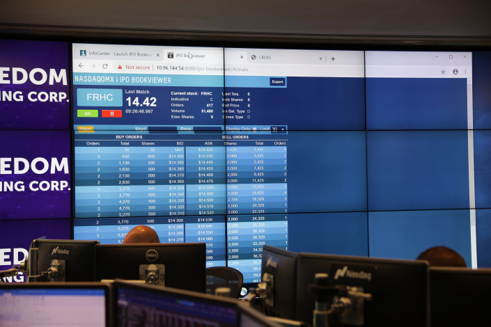 В трейдинг-руме в ожидании открытия торгов акциями холдинга под тикером FRHC.