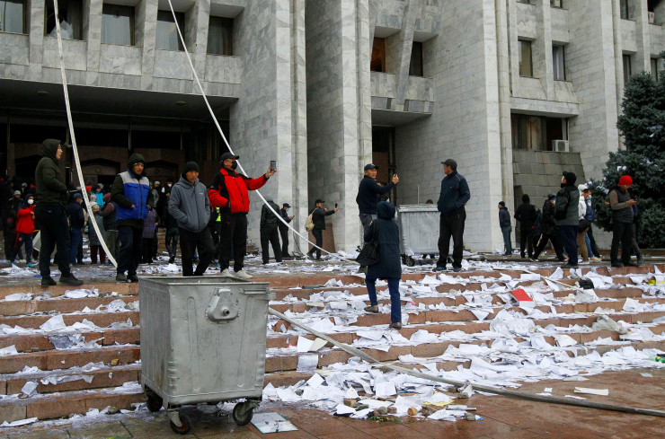 Позже действующий президент страны Сооронбай Жээнбеков скажет, что приказал силовым органам не открывать огонь и не проливать кровь. Reuters©