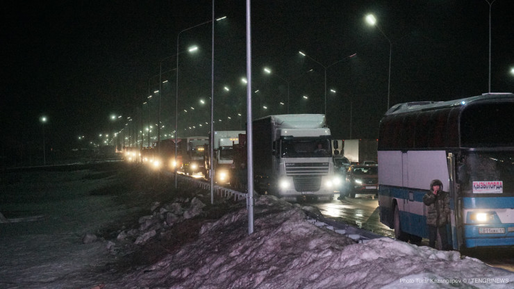 Машины собрались с вечера 21 марта на блокпосту в районе поселка Жибек-Жолы.