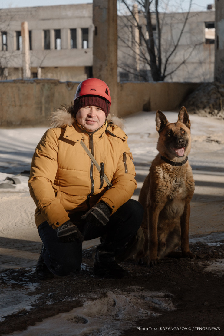 Корреспондент Tengrinews.kz и нашедшая его собака-спасатель Айк.