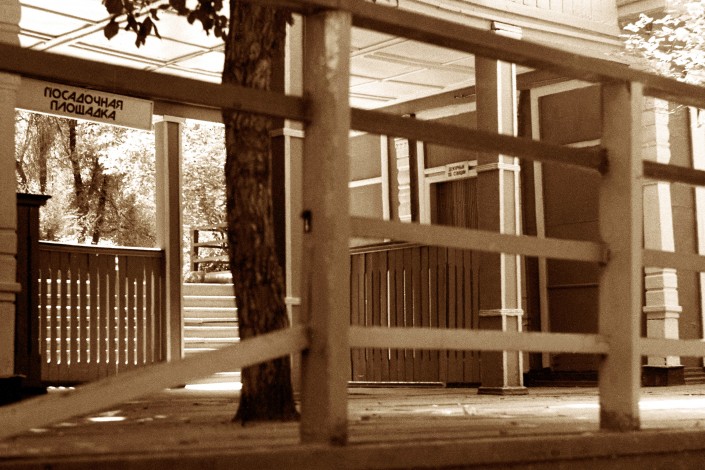 Детская железная дорога в парке имени Горького. Станция имени Павлика Морозова. Касса, диспетчерская. 1950-е годы.