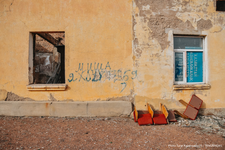 Этот фоторепортаж хотелось бы предварить двумя цитатами. Строчкой из песни группы "Мумий Тролль": "Быть может, откопают через тысячу лет в фантиках жвачки и осколках монет". И словами из творчества группы "Кино": "Завтра кто-то, вернувшись домой, застанет в руинах свои города". Почему-то именно эти композиции приходят на ум, когда прогуливаешься по поселку Аксуек (Ақсүйек). Расположен он в Мойынкумском районе Жамбылской области.