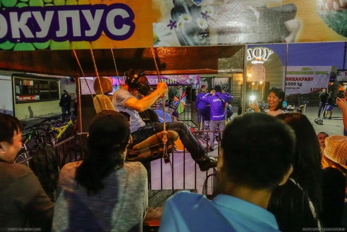 "Ой, мамочка!" - успевает сказать девушка за миг до того, как натянутая резинка подбрасывает ее высоко вверх. За это сомнительное удовольствие нужно заплатить 1 000 тенге.