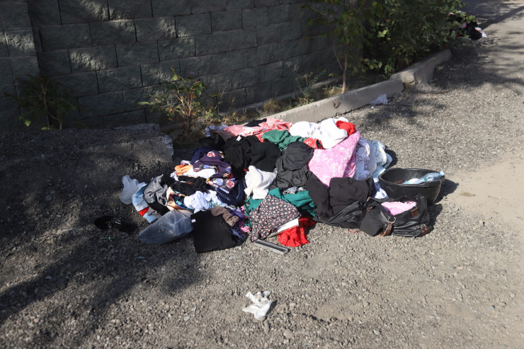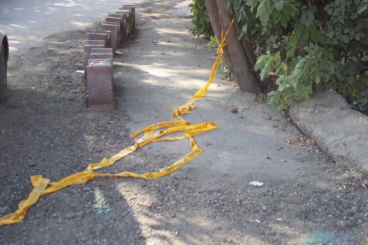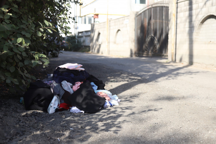 Сегодня утром неподалеку от того самого дома лежит оборванная лента и чьи-то личные вещи. Полицейские затруднились сказать, кому они принадлежат. Чуть позже эти вещи забрала машина, принадлежавшая акимату. С приходом журналистов территорию снова огородили.