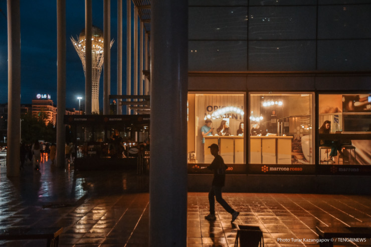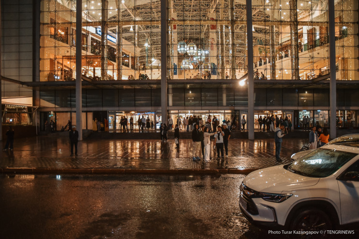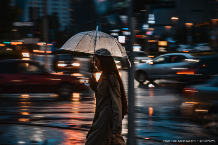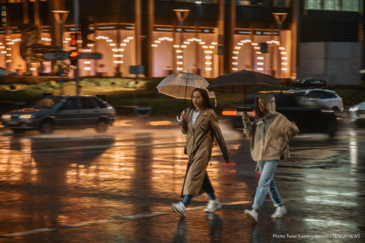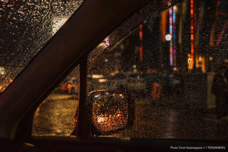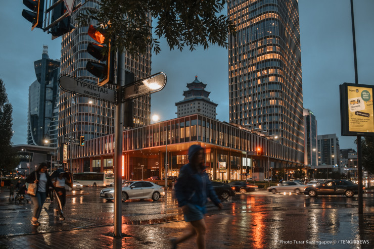 Дождь превратил тротуары и дороги в отражающие поверхности. Местами даже может показаться, будто ты уже не в Нур-Султане, а, например, в Сеуле или Нью-Йорке.