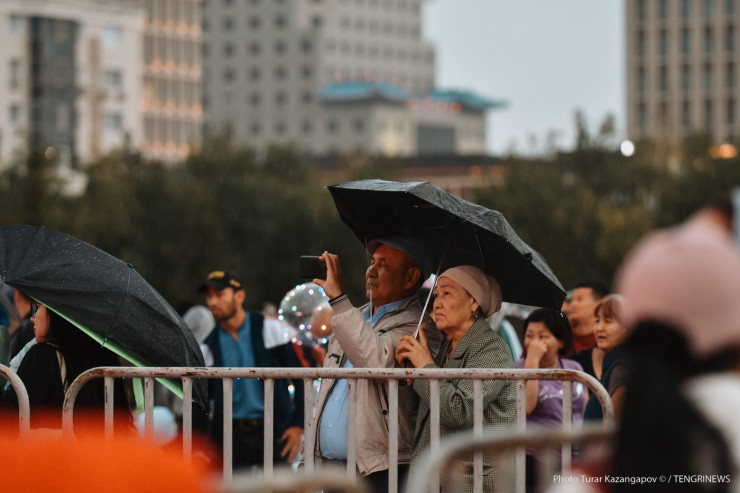 Однако, как и следовало ожидать, привыкших к перемене погоды астанчан это не остановило. Развернув предусмотрительно взятые с собой зонты, горожане собирались на концертах.