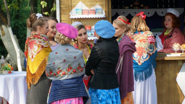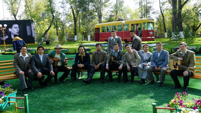 Погружение в 60-е начинается сразу же на входе в парк. Здесь расположились парни с гитарами, одетые по моде того периода.