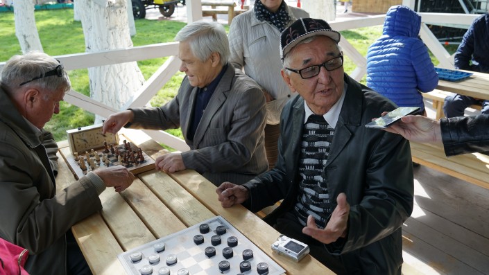 В беседке в ожидании Президента играют в шахматы и шашки. "Ну как, похожий парк?" - спрашиваю у одного из них. "Очень, даже еще лучше", - ответили мне.