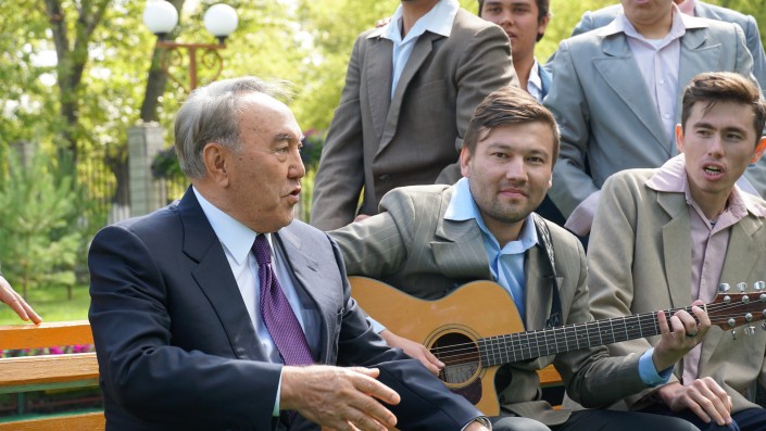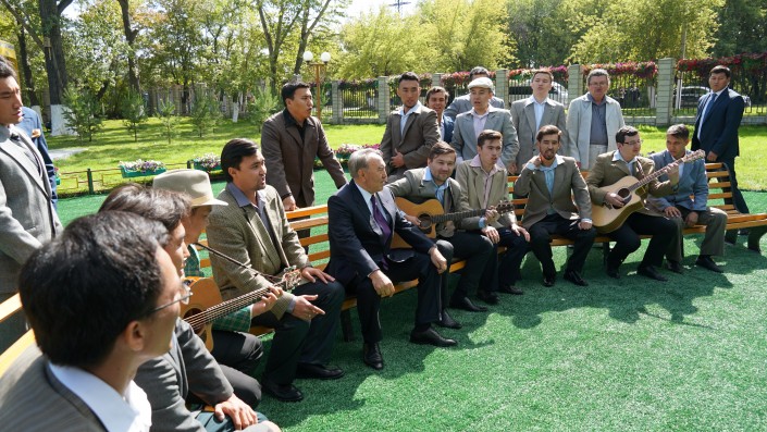 В один момент Нурсултан Назарбаев даже подхватывает песню.