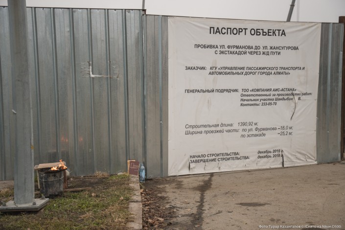 Возле ворот стройки наше внимание привлек вот этот маленький костер.