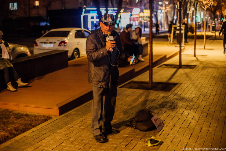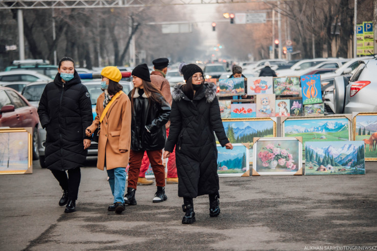 "Мы здесь просто кайфуем, - говорит их коллега Бахытбек, - дарим людям улыбку. Я сюда пришел, когда карантин начался, из-за того, что лишился работы. Получил от государства 42 500, взял фотоаппарат и вышел сюда.