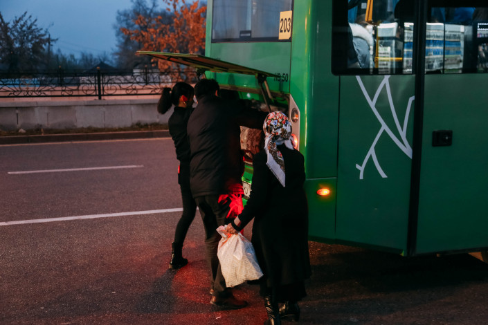 "Можно попробовать дождаться маршрутку, она приходит пустая, едет быстро. Автобусы 207-го приходят каждые 20 минут, но они уже набитые, говорят, где-то на Суюнбая пассажиров начинают брать. Ехать почти два часа стоя после трудового дня я не готова. Еще есть 203-й автобус, но он идет окружными путями и тоже много народа, долгие остановки при полном салоне. Либо еще на такси, но именно отсюда на нем не уедешь. Меньше чем через 25-30 минут отсюда не уедешь, а если снег или дождь - и того дольше. Предлагаю вам назвать статью "Отверженные", мы - отверженные, это прямо про нас".