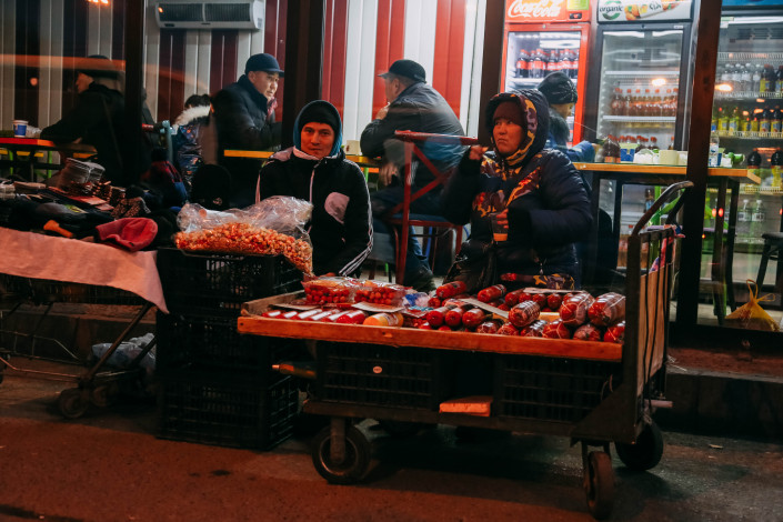 "Мы с отцом работаем в Алматы, ниже Рыскулова. На заднее сиденье берем пассажиров, получается 600 тенге. Это пачка сигарет или одно блюдо в столовой. Так что мы не таксуем, мы помогаем", - с улыбкой говорит водитель, когда мы рассчитываемся с ним за дорогу.