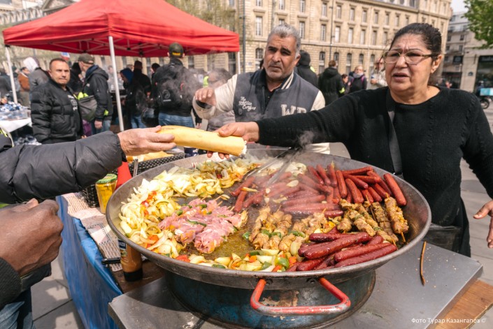 Светило солнце, пели птицы, люди улыбались, звучала музыка. И если не пытаться понять лозунги, то складывалось такое впечатление, что это просто какой-то праздник. Такой Наурыз, но своеобразный, на французский манер.