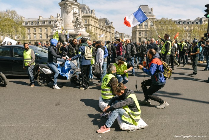 В Париже есть традиция - там каждую субботу происходит маленькая революция. Речь идет об акции так называемых "желтых жилетов". Собираются французы, надевают яркие строительные жилеты, выкрикивают лозунги против власти и шествуют по улицам. Заканчивается это все столкновениями с силовиками и иногда погромами. Не обходится и без пострадавших. Корреспонденты Ренат Ташкинбаев и Турар Казангапов побывали на одной из таких еженедельных акций, удивились всему, что там происходит, и, надышавшись дымом от жареных хот-догов, решили обо всем рассказать читателям Tengrinews.kz
