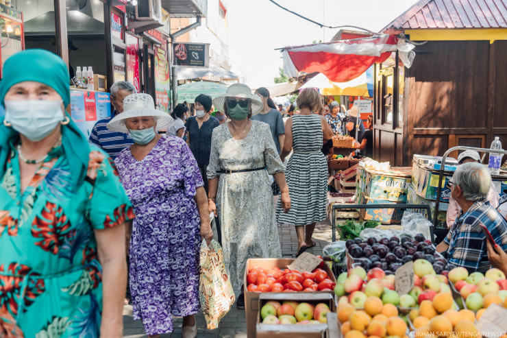 Из самого тихого места днем мы перебазируемся в самое шумное - местный базар. Интересуемся, сколько стоит тут транспорт. На автобусе - 120 тенге, а вот таксисты, не моргнув глазом, предлагают отвезти за тысячу.