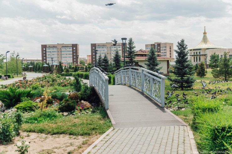 Мы идем дальше и замечаем, что здесь даже есть свой "Байтерек", он находится рядом с Дворцом школьников.