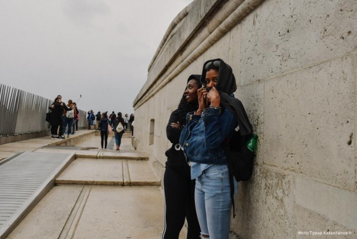 Кто-то может возразить, что в Казахстане на момент фото шел дождь. Не успели мы об этом подумать, как появился порывистый ветер и в столице Франции заморосило. Но люди не спешили расходиться со смотровой площадки.