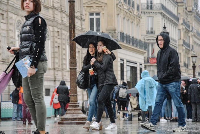 Туристы, по всей видимости, слышали мнение про то, что настоящая красота Парижа проявляется под дождем.