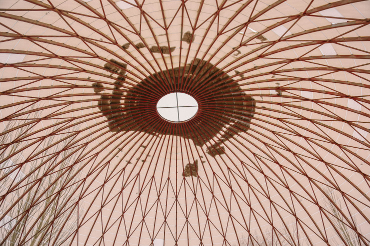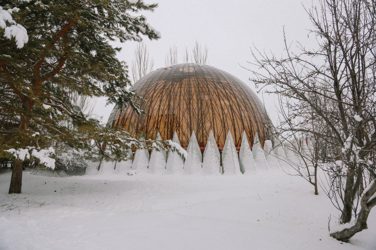 Взглянув вверх, мы увидели, что купол сделан в виде юрты с шаныраком по центру. Здесь наверняка хорошо летом - в тени и прохладе.