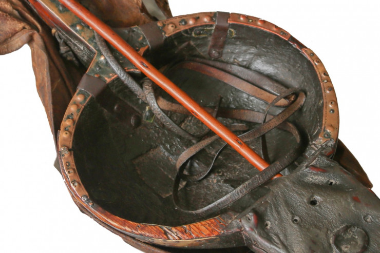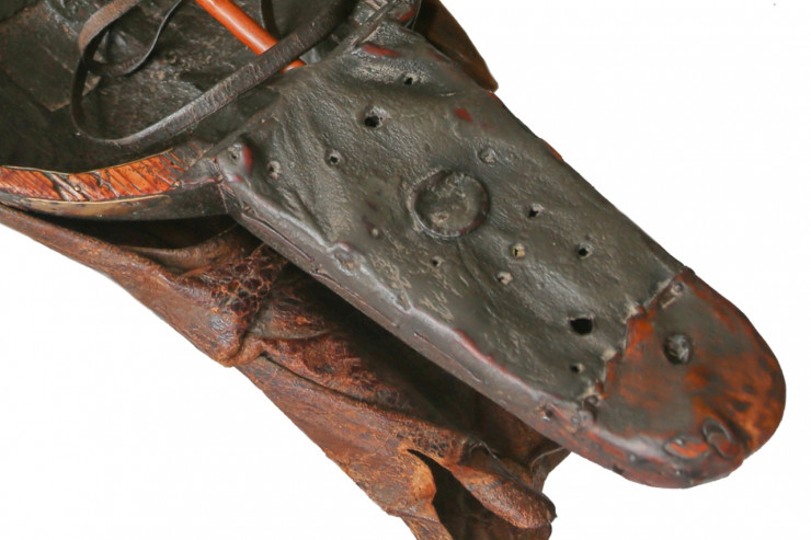 Время и моль сделали свое дело - струн нет, а обтянутая кожей нижняя часть кобыза заметно потрепана.