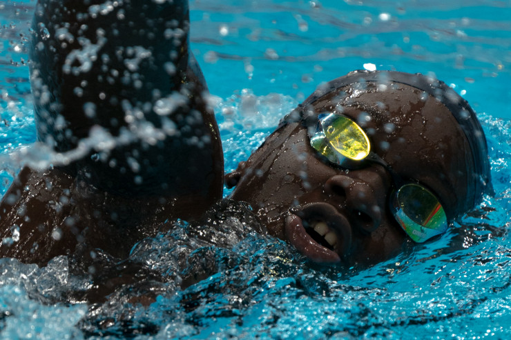 Но при этом спорт может выглядеть и внешне очень эстетично. Посмотрите, как гармонично смотрится этот пловец: или он преодолевает сопротивление воды, или вода стремится искупать его.