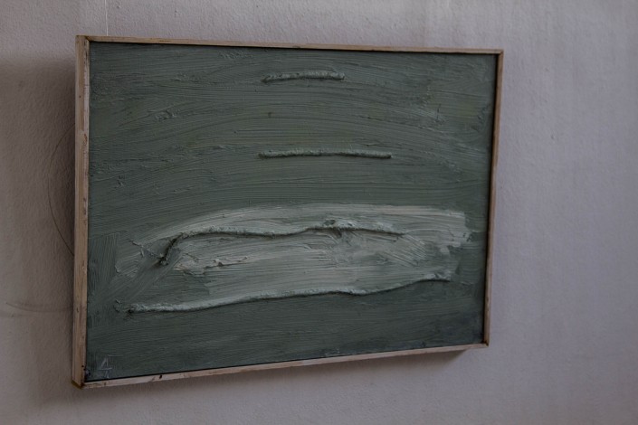 У самого входа посетителей галереи встречает и провожает работа Георгия Трякина-Бухарова, дружившего с Хальфиным. Когда художник умер и родственники выбрасывали ненужные, на их взгляд, вещи, то он собрал фрагменты предметов и сделал вот такой коллаж. Хальфин занимался не только живописью, он еще делал инсталляции, акции устраивал. Эта выставка посвящена ему как живописцу. А работа его друга напоминает нам о других гранях его таланта".
