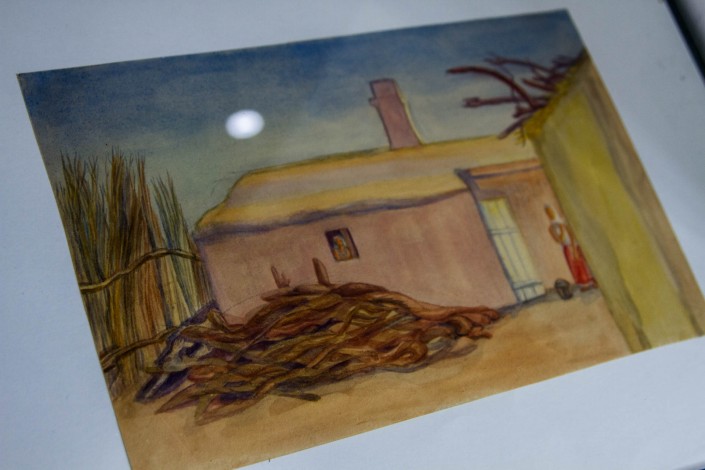 Владимир Стерлигов был эвакуирован в Алматы после контузии в 1942 году, преподавал в Театрально-художественном училище, иллюстрировал детские книги. Он - ученик Каземира Малевича. До войны его живопись была авангардной. Все художники, попадая в новые обстоятельства и пейзажи, с помощью линий и цвета охватывают то, что их окружает. Мастер делал зарисовки карандашом и акварелью. Обратите внимание на качество бумаги. Мой старший брат пошел в школу в 1944 году - они писали на полях газет, бумаги не было. Даже желтая тонкая хрупкая писчая бумага тогда была подарком.