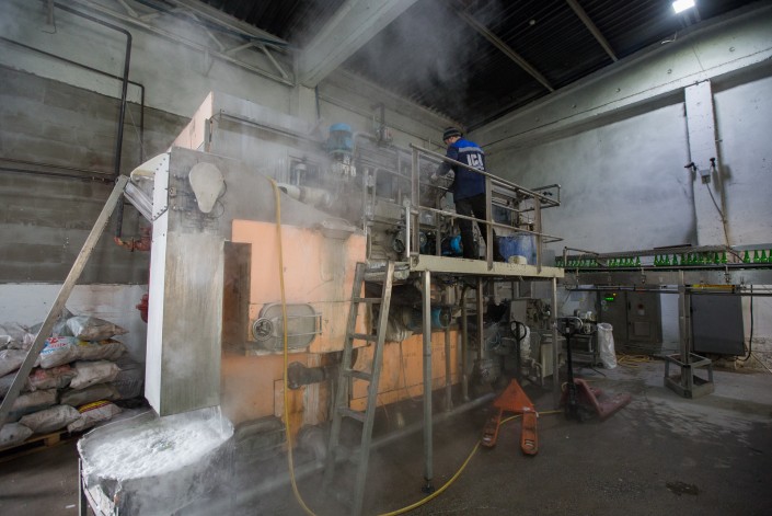 При помощи специальных агрегатов и химикатов использованную стеклотару очищают и обеззараживают.